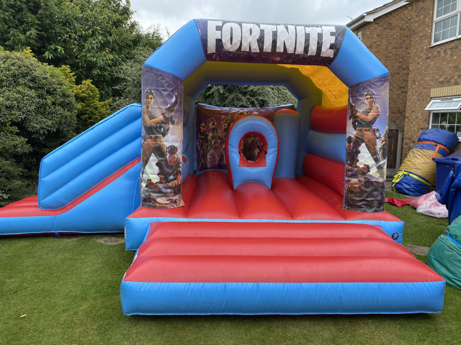 Add action and adventure to your next party with our Fortnite Side Slide and Bounce Castle! Featuring bold Fortnite graphics and a built-in side slide, this inflatable is a guaranteed hit for fans of the game. Whether it's a birthday party, school fair, or community event, kids will love bouncing and sliding all day long.