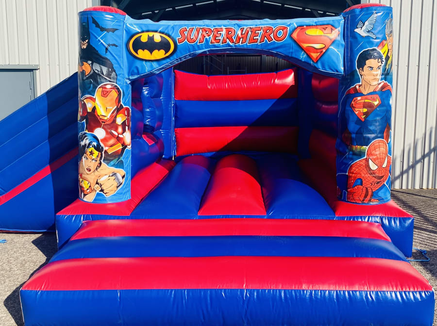 Super hero fans, assemble! Our amazing Super Hero H-Frame Side Slide Bouncy Castle is perfect for indoor venues thanks to its compact design and total height of just 7.7ft.