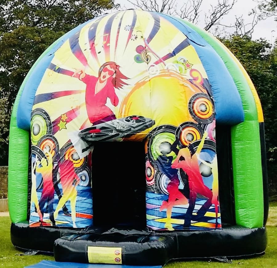 🎧 DJ Disco Dome Bouncy Castle Hire Take your event to the next level with our DJ Disco Dome – an all-in-one inflatable party experience! Whether it's sunshine or showers, this fully enclosed dome keeps the party pumping with its built-in disco lights and Bluetooth speaker. Just connect your playlist and let the good times bounce.